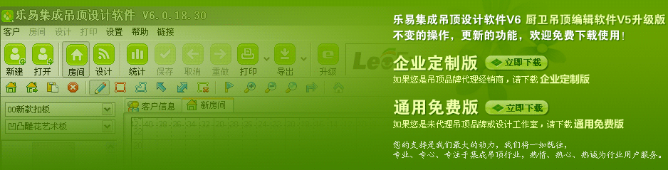 樂(lè)易集成吊頂設(shè)計(jì)軟件V6可以在本站上免費(fèi)下載安裝,我們非常希望您能把使用過(guò)程中的問(wèn)題、意見(jiàn)、建議及時(shí)反饋給我們,以便我們不斷完善和升級(jí)軟件。