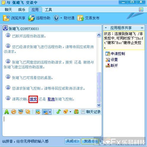QQ版遠程協(xié)助使用流程 樂易科技 發(fā)布于:2009/9/21 15:17:23 人氣:57280 |