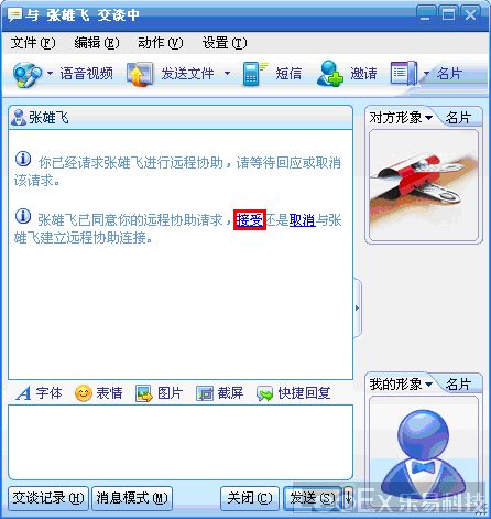 第三步:等待對(duì)方確認(rèn)后,點(diǎn)擊再次彈出的確認(rèn)對(duì)話框中的“接受”按鈕