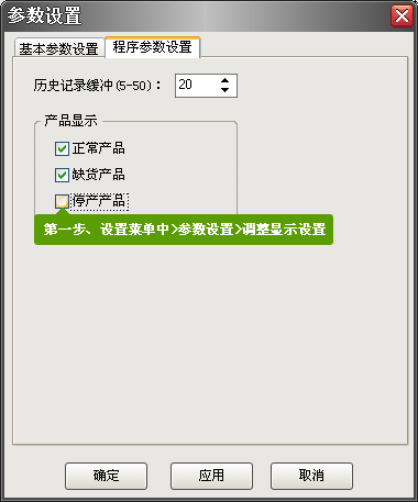 具體操作: 第一步:在設(shè)置菜單的“參數(shù)設(shè)置”中,將“產(chǎn)品顯示”中不需要顯示的產(chǎn)品分類前的勾選去掉。 第二步:在設(shè)置菜單的“產(chǎn)品管理”中,將對應(yīng)的產(chǎn)品狀態(tài)選擇為第一步中對應(yīng)的狀態(tài)即可。