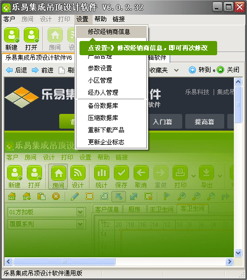 啟動軟件,點擊“設置”,然后選擇設置菜單下面的“修改經(jīng)銷商信息”欄目,就可以再次修改經(jīng)銷商信息,完成后,點擊“保存”即可。