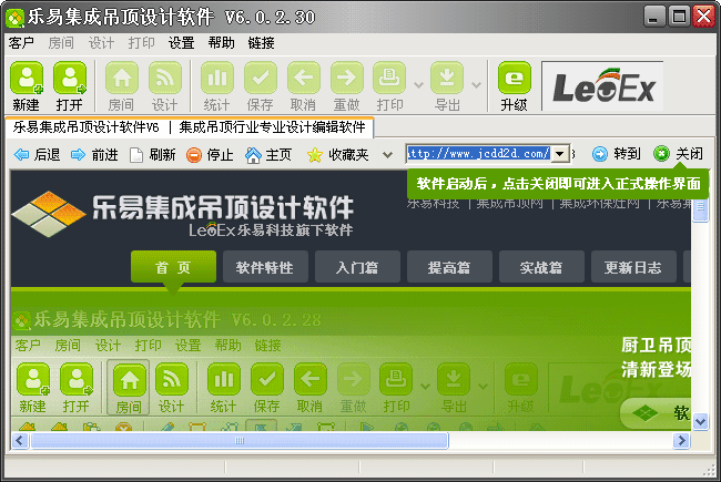 軟件啟動時,首先顯示的是一個網(wǎng)頁,點擊右上的關(guān)閉即可進入正式操作界面。