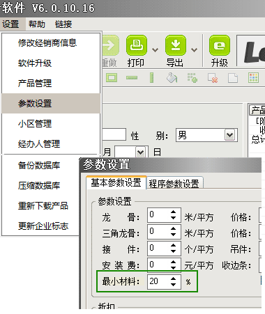 1、完整材料單位最小值怎么設(shè)置? 點擊“設(shè)置”=》“參數(shù)設(shè)置”,如下圖;
