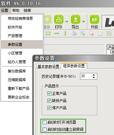 2、軟件啟動后,讓內(nèi)嵌的網(wǎng)頁不顯示,怎么設(shè)置? 點擊“設(shè)置”=》“參數(shù)設(shè)置”=》“程序參數(shù)設(shè)置”,如下圖,去掉勾選即可;