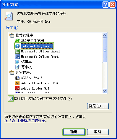 解決方法: 啟動(dòng)軟件,隨意新建一張圖紙并導(dǎo)出,然后通過(guò)導(dǎo)出文件夾中的系統(tǒng)網(wǎng)頁(yè)文件對(duì)瀏覽器進(jìn)行關(guān)聯(lián)操作。具體操作如下: 圖紙會(huì)有三個(gè)文件,右鍵選擇瀏覽器標(biāo)識(shí)的文件,選擇打開(kāi)方式/選擇程序。 如圖: 選擇好后會(huì)跳出一個(gè)對(duì)話框。 如圖: